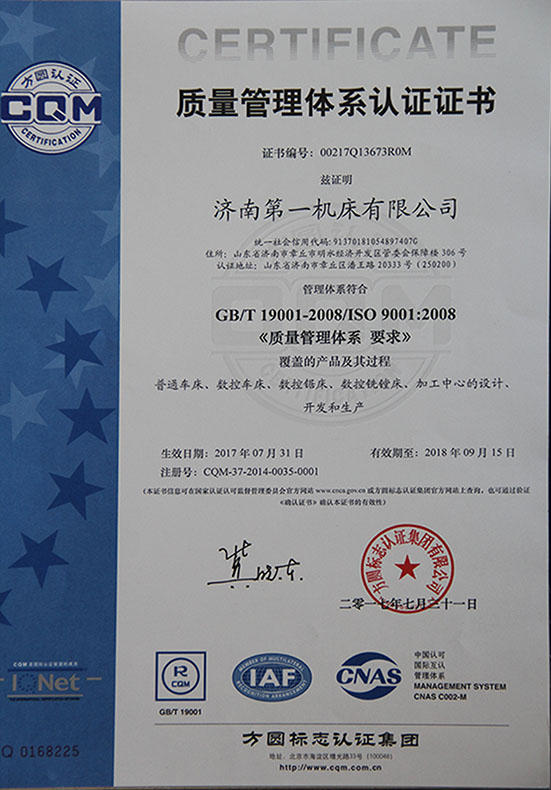 質(zhì)量管理體系認證證書(shū)