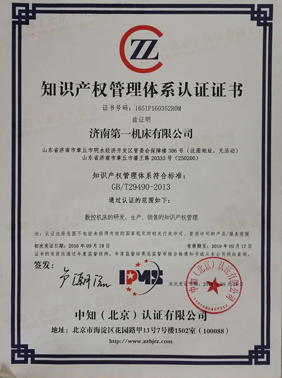 知識產(chǎn)權管理體系認證證書(shū)