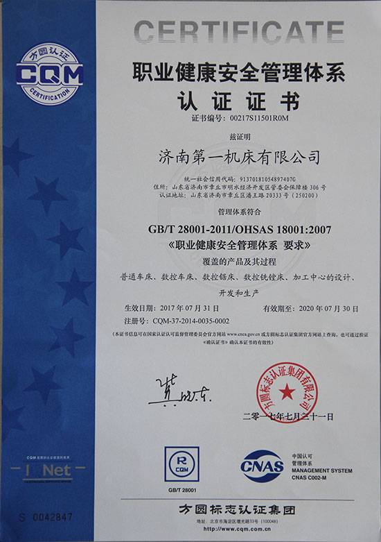 職業(yè)健康安全管理體系認證證書(shū)